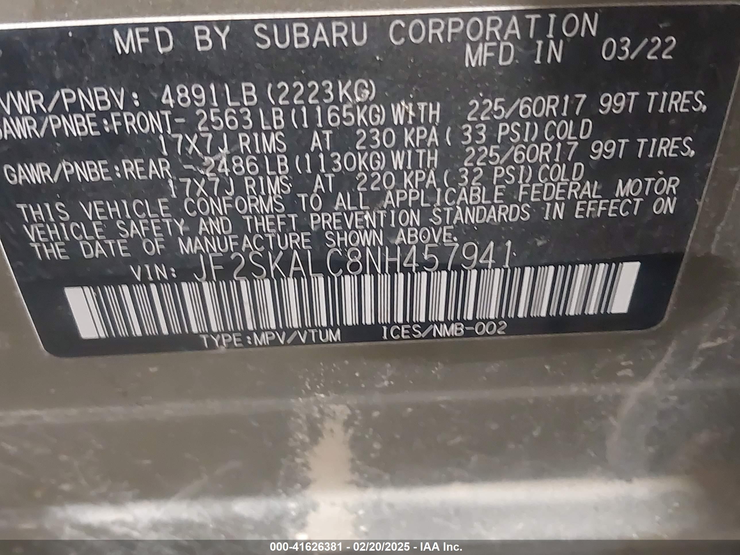2022 SUBARU FORESTER WILDERNESS VIN: JF2SKALC8NH457941 LOT: 41626381