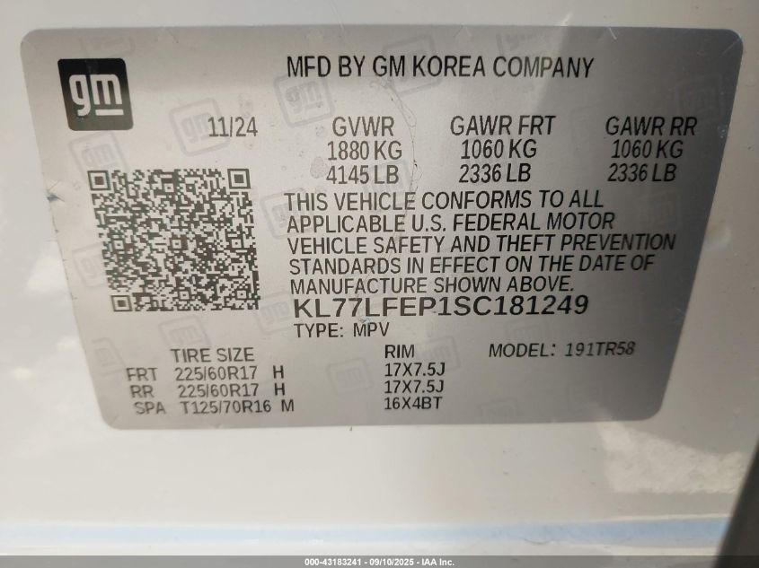 2025 CHEVROLET TRAX LS VIN: KL77LFEP1SC181249 LOT: 43183241