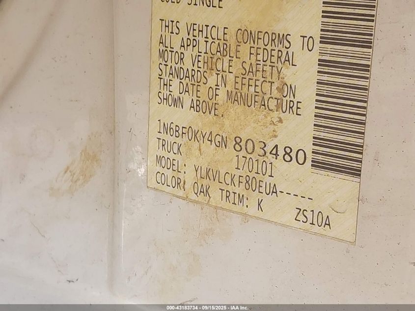 2016 NISSAN NV CARGO NV2500 HD S V6 VIN: 1N6BF0KY4GN803480 LOT: 43183734