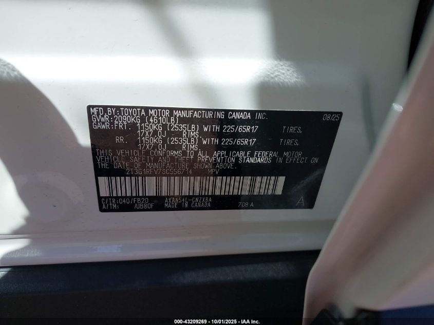 2025 TOYOTA RAV4 LE VIN: 2T3G1RFV7SC556714 LOT: 43209269