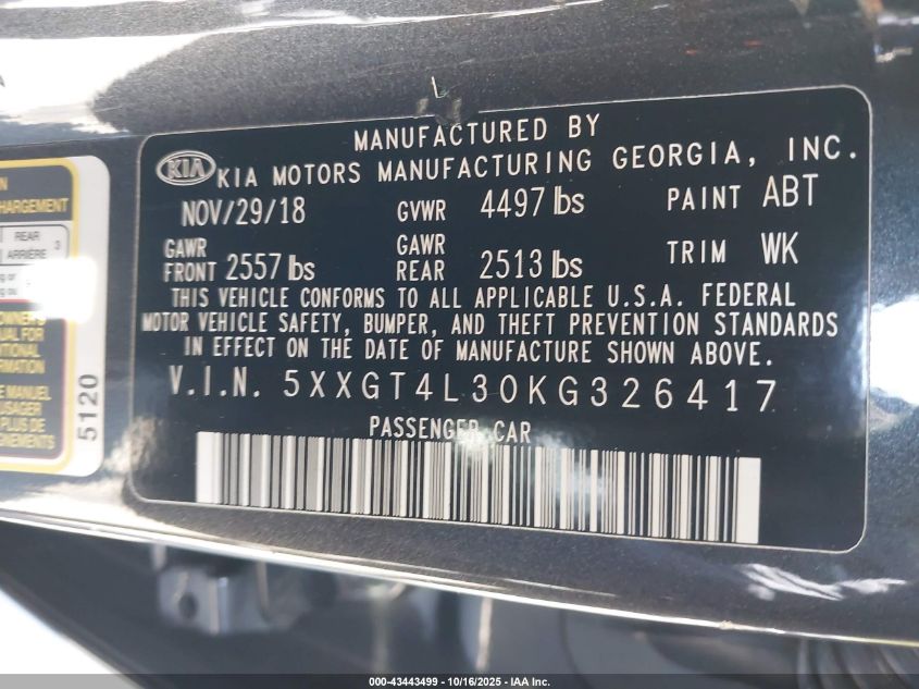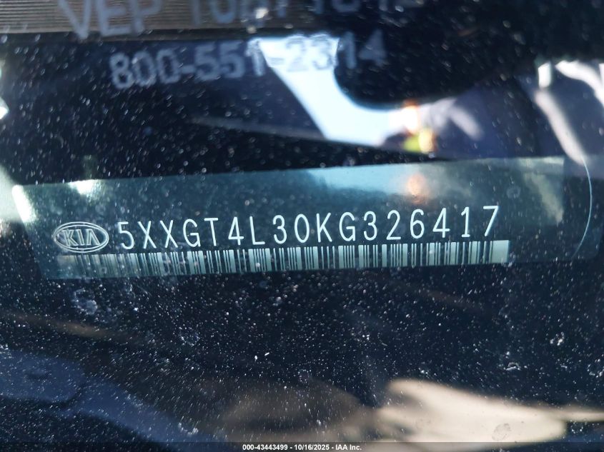 2019 KIA OPTIMA LX VIN: 5XXGT4L30KG326417 LOT: 43443499