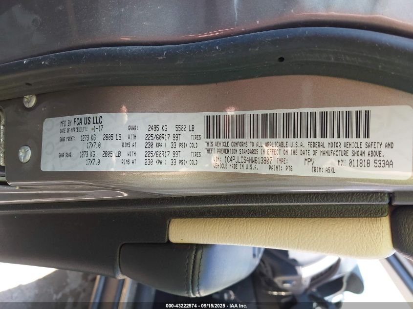 2017 JEEP CHEROKEE LATITUDE FWD VIN: 1C4PJLCS4HW613807 LOT: 43222574