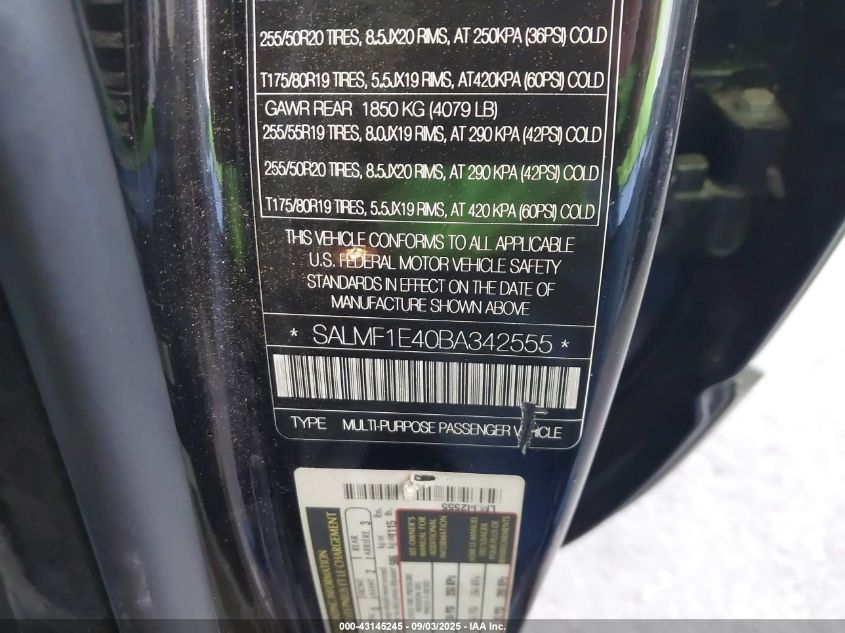 2011 LAND ROVER RANGE ROVER SUPERCHARGED VIN: SALMF1E40BA342555 LOT: 43145245