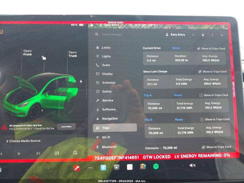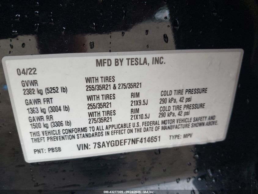 2022 TESLA MODEL Y PERFORMANCE DUAL MOTOR ALL-WHEEL DRIVE VIN: 7SAYGDEF7NF414651 LOT: 43277309