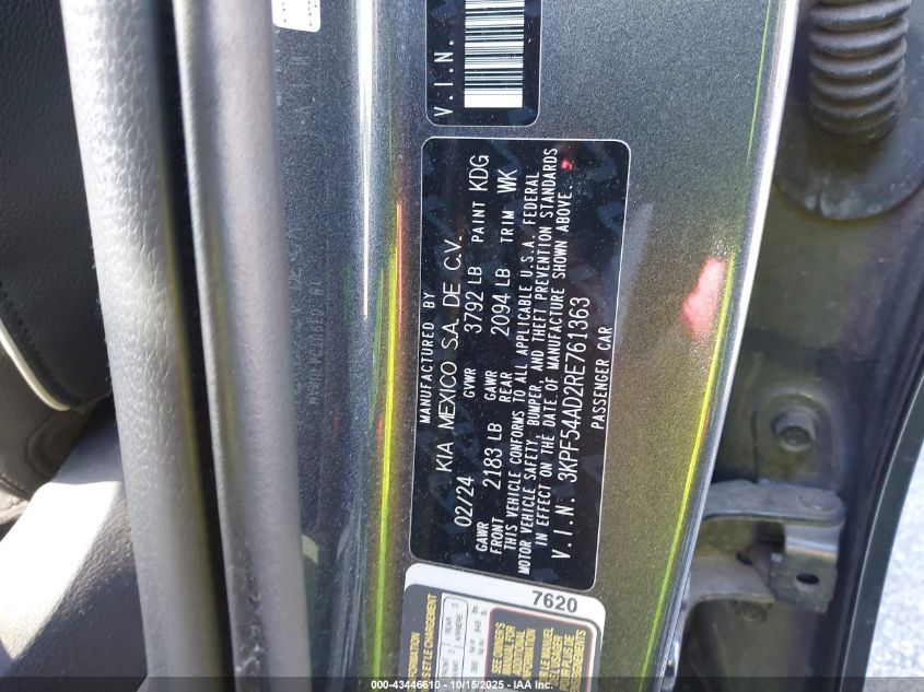 2024 KIA FORTE GT-LINE VIN: 3KPF54AD2RE761363 LOT: 43446610