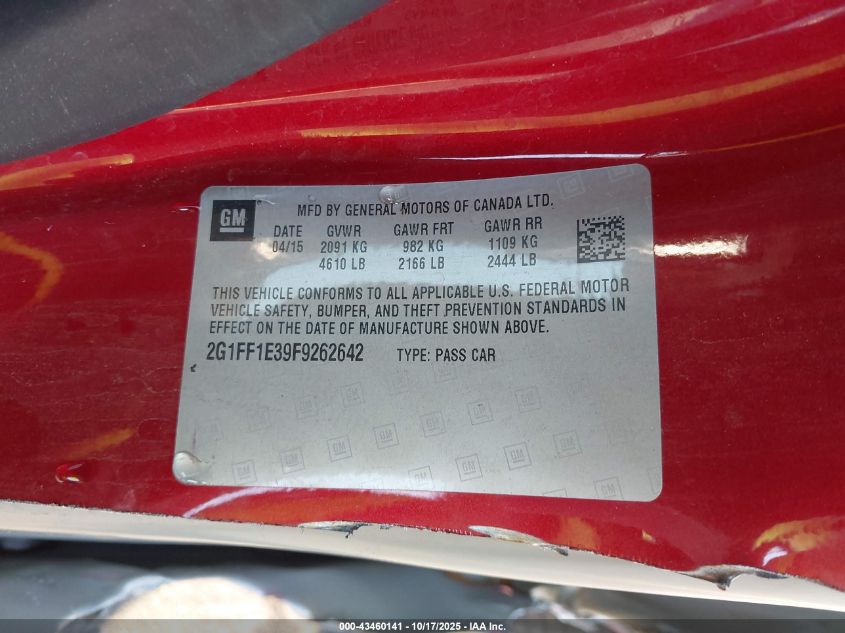 2015 CHEVROLET CAMARO 2LT VIN: 2G1FF1E39F9262642 LOT: 43460141