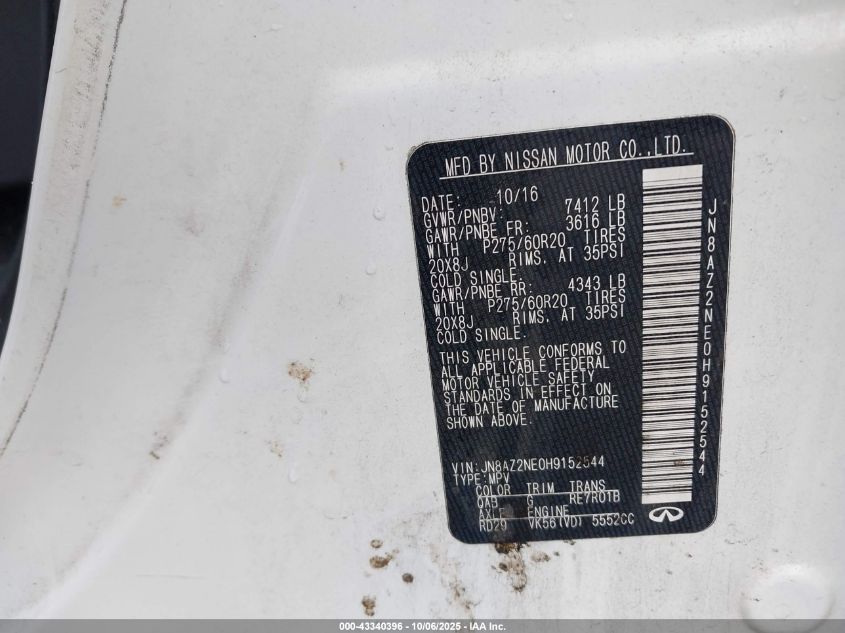 2017 INFINITI QX80 VIN: JN8AZ2NE0H9152544 LOT: 43340396