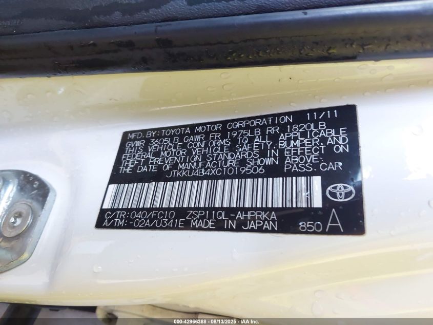 2012 SCION XD VIN: JTKKU4B4XC1019506 LOT: 42966388