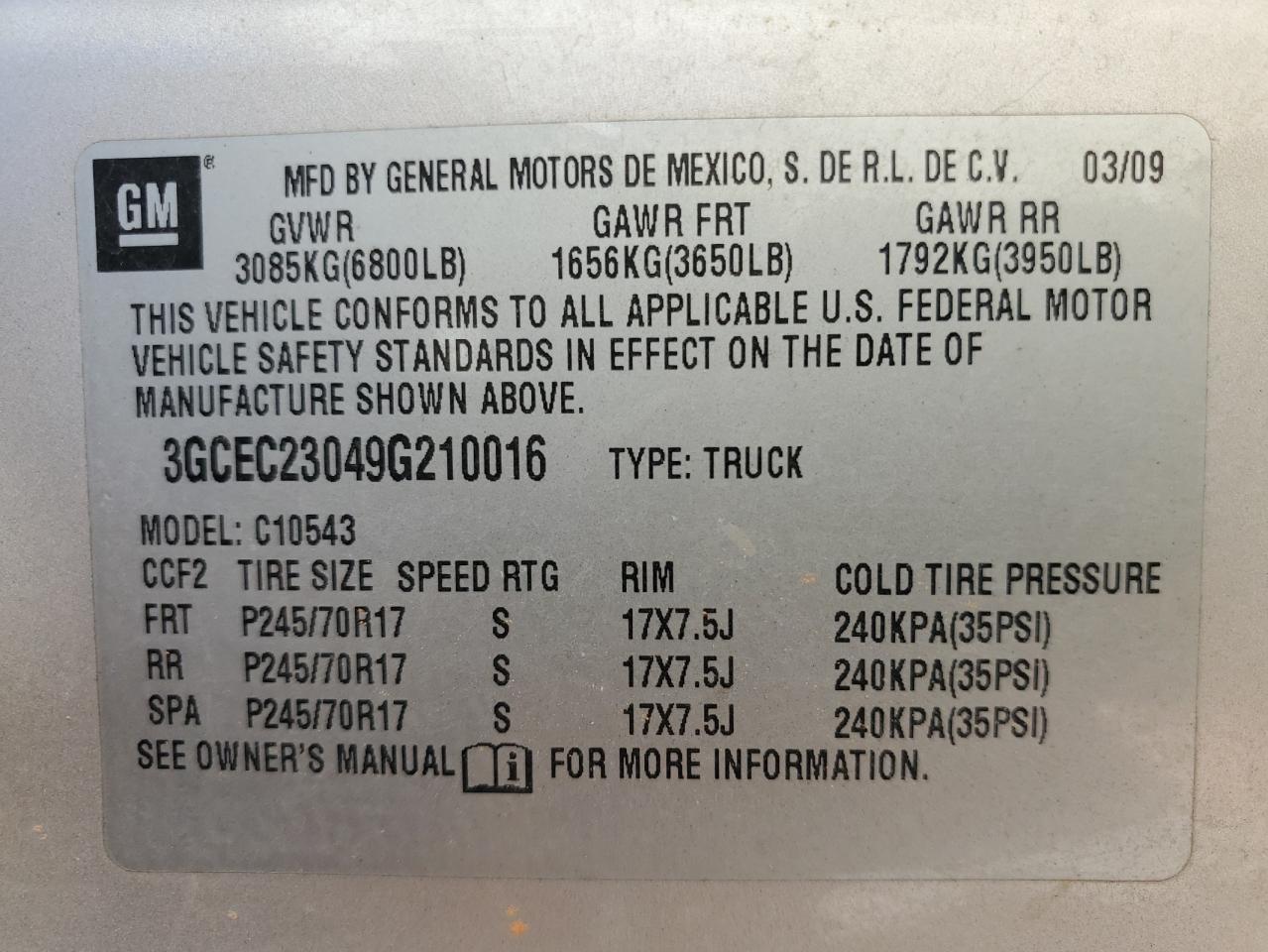 VIN: 2G1FF3D37F9243472
